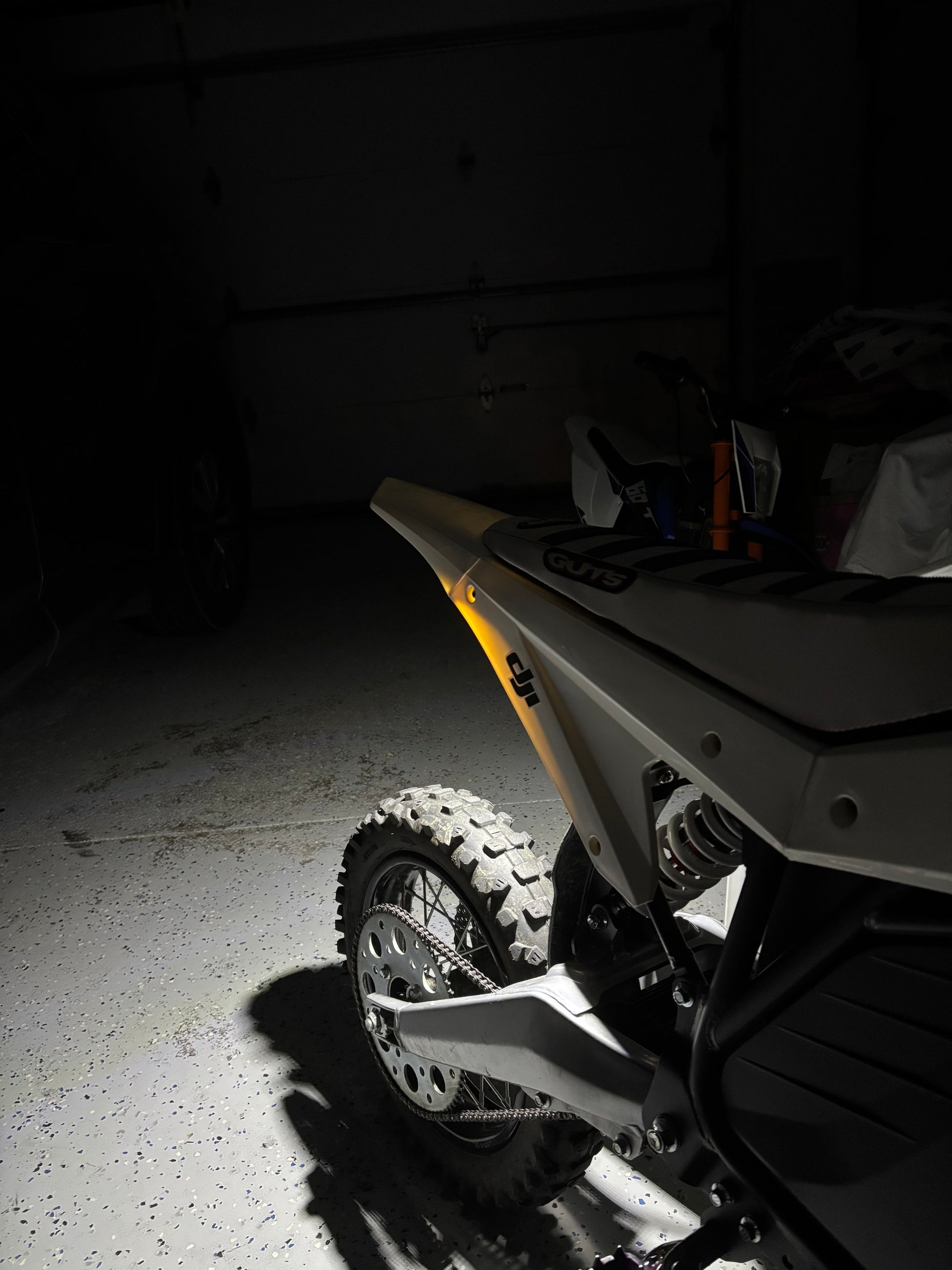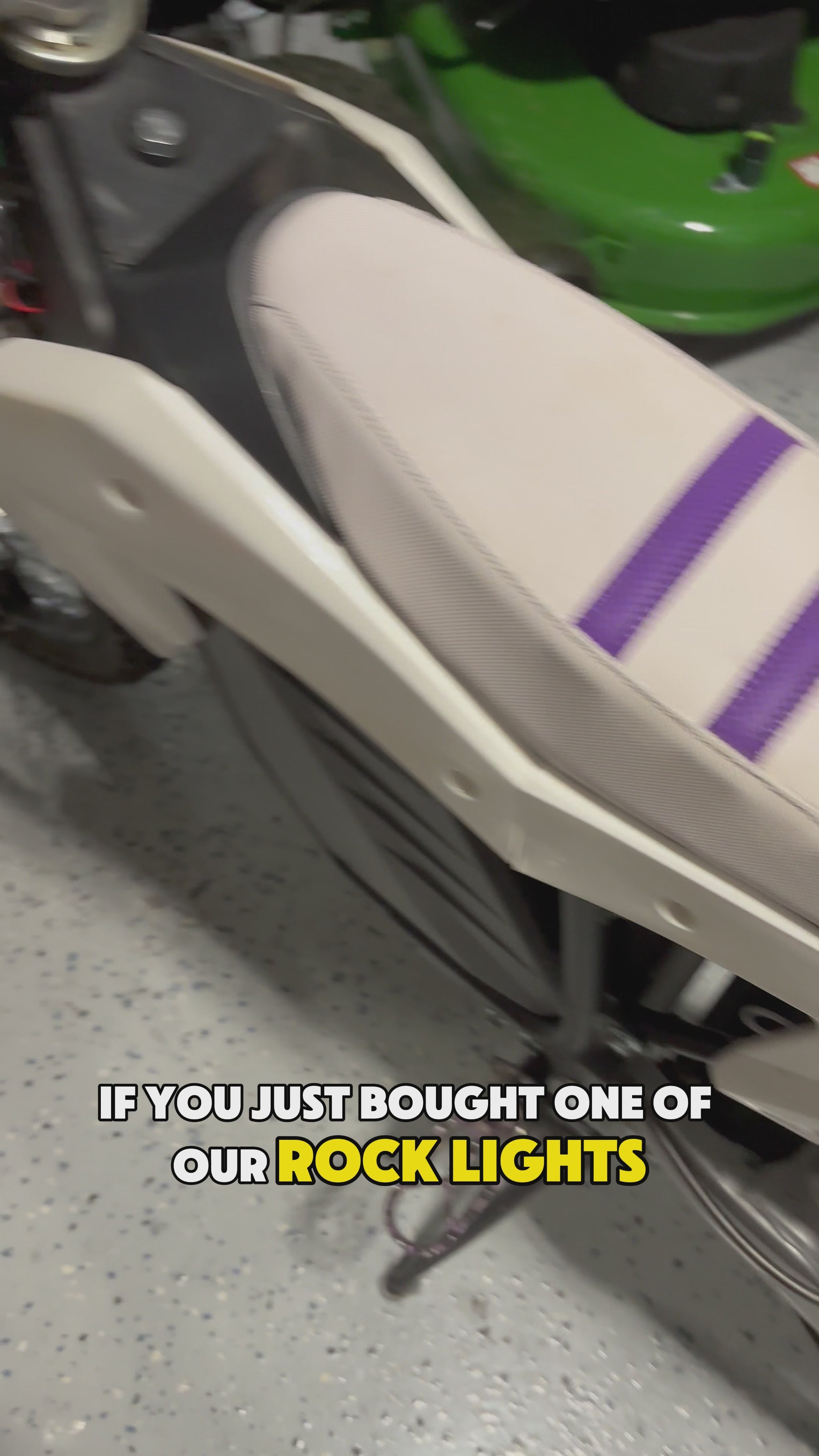Introducing the Plug and Play Rock Light that will work with any ETM RTR, Surron, Eride, Talaria, Most Modded Razors, Tuttio, etc. This product contains Rock Light that comes in many colors, an on and off switch, and a 12v down converter (all prewired) which connects to the battery terminals on the controller with O ring connectors! Very simple to set up! To mount the Rock light and 12v converter the proper bolts, nuts, and zip ties will be included! There are some images and a tutorial video for you to refer to when putting this on your bike.